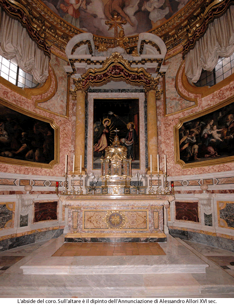 L’Annunciazione al centro dell’altare porta la firma di Alessandro Allori (1533-1607) e sovrasta un ricco tabernacolo barocco.